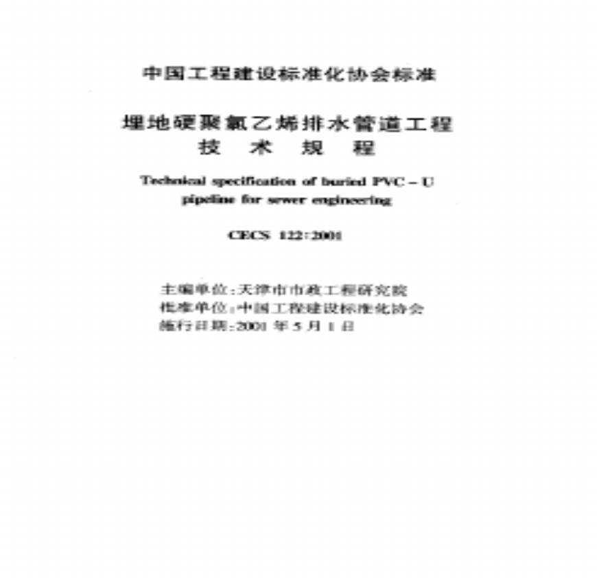 CECS122-2001 埋地硬聚氯乙烯排水管道工程技术规程资料下载,喜欢的朋友可以下载收藏!