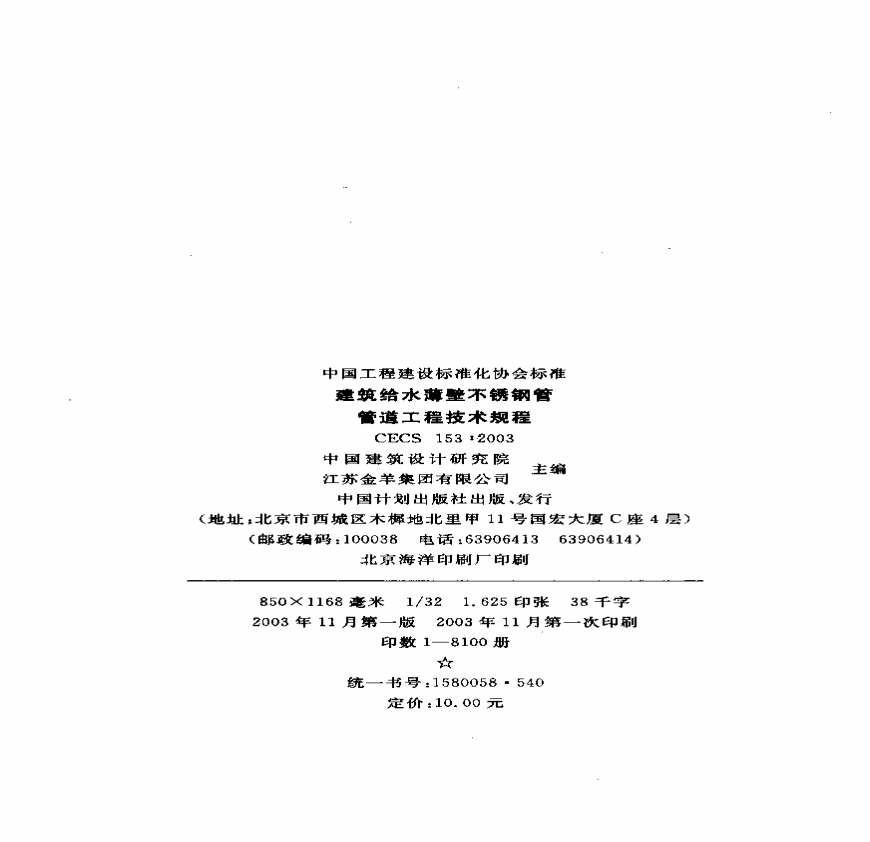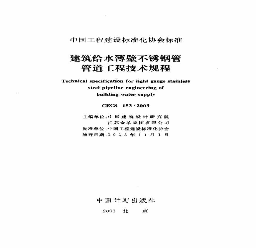 > CECS153-2003 建筑给水薄壁不锈钢管管道工程技术规程