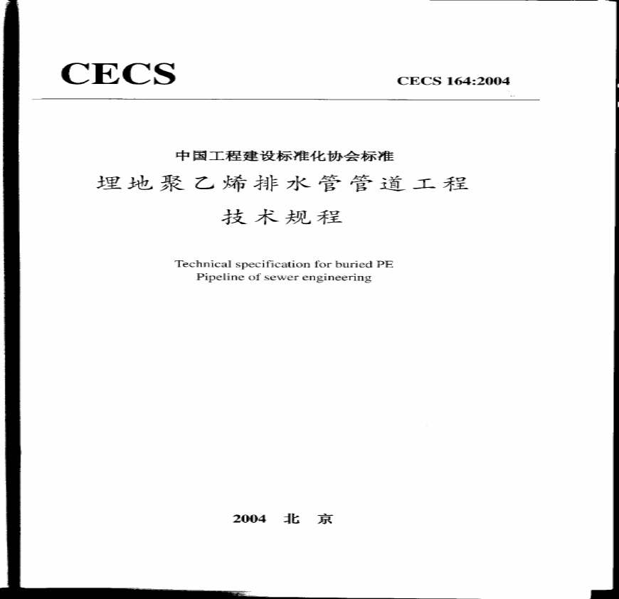 CECS 164-2004 埋地聚乙烯排水管管道工程技术规程资料下载,喜欢的朋友可以下载收藏!