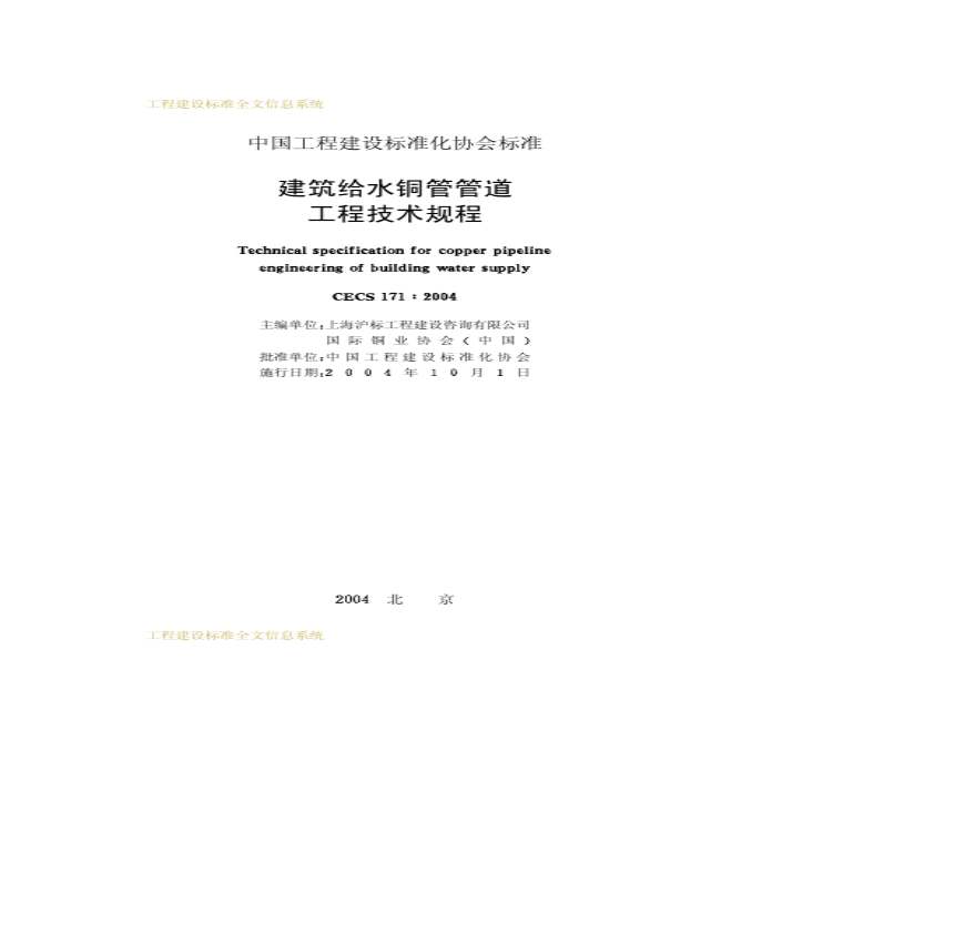 > CECS171-2004 建筑给水铜管管道工程技术规程