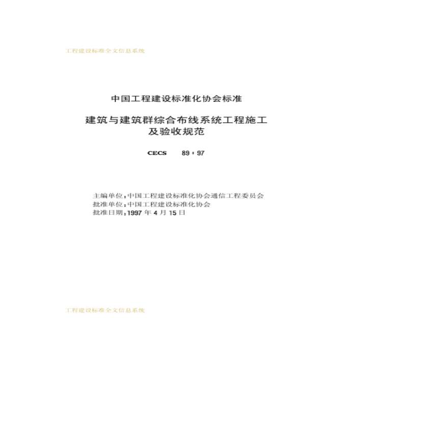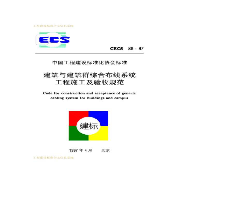 CECS89-97建筑与建筑群综合布线系统工程施工及验收规范资料下载,喜欢的朋友可以下载收藏!