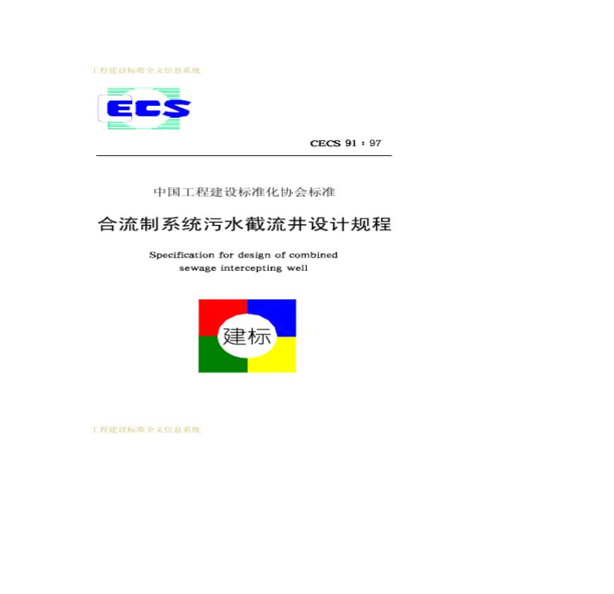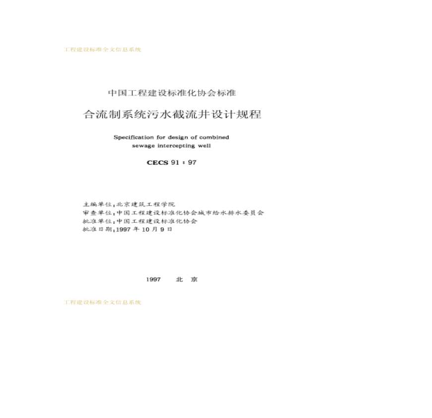 CECS91-97合流制系统污水截流井设计规程资料下载,喜欢的朋友可以下载收藏!