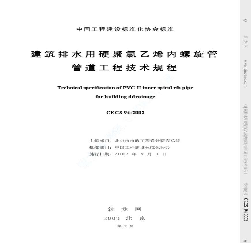 CECS94 2002 建筑排水用硬聚氯乙烯内螺旋管管道工程技术规程资料下载,喜欢的朋友可以下载收藏!