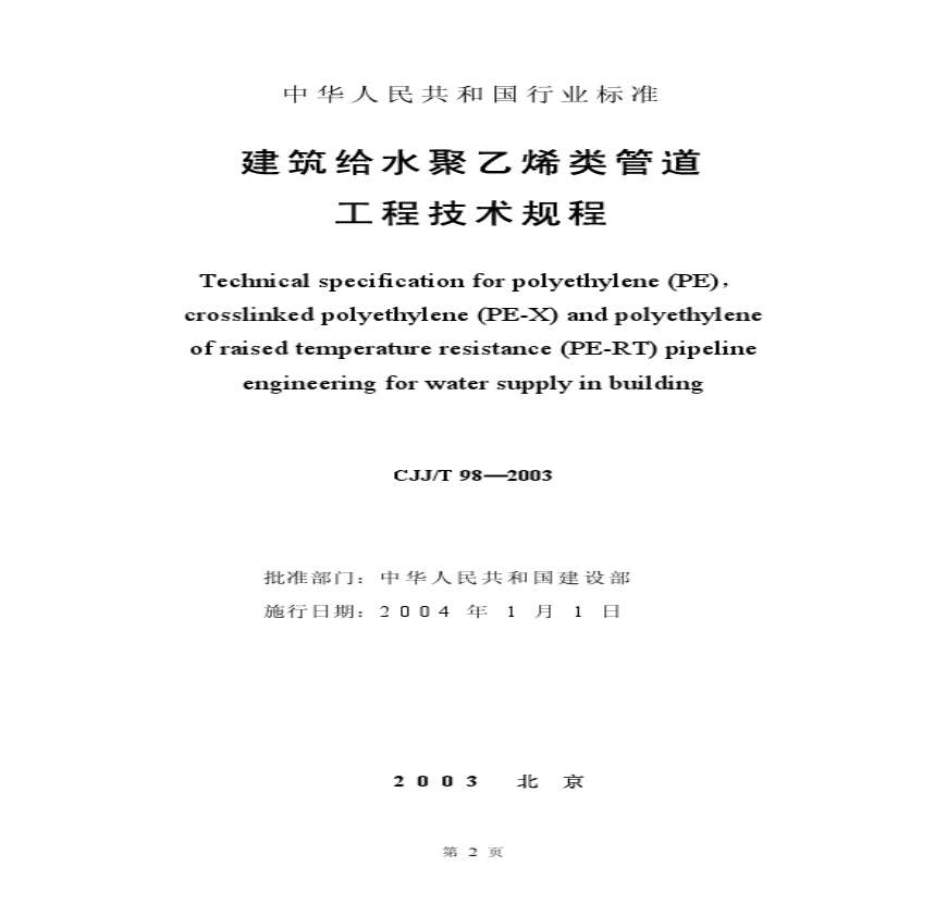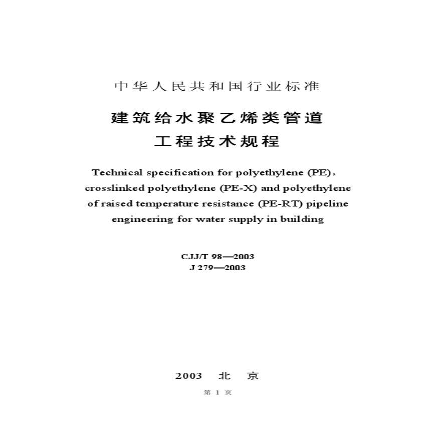 国标简介: 中华人民共和国行业标准 为使建筑给水用聚乙烯类管道的工程设计、施工及验收做到技术先进、经济合理、安全