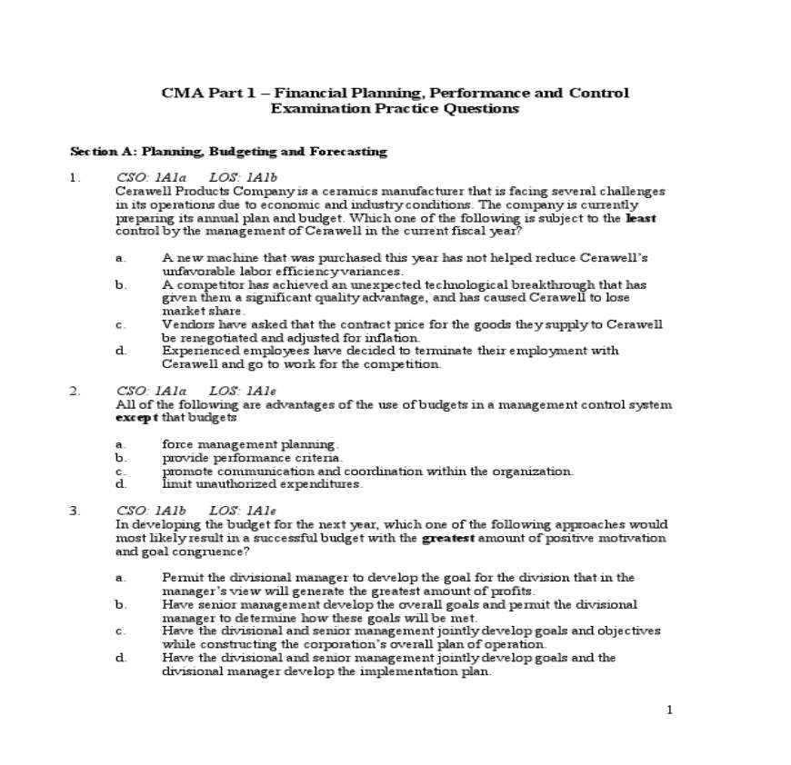 > CMA考试 题库 Part 1