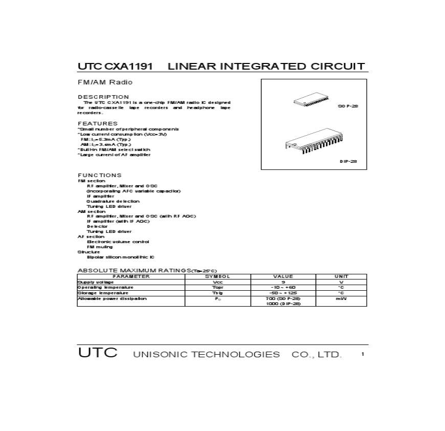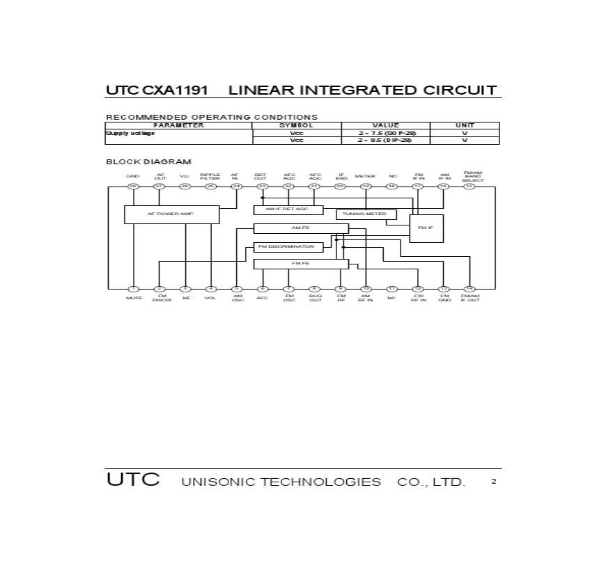 CXA1191收音机集成芯片.pdf 免费下载