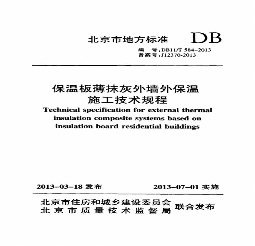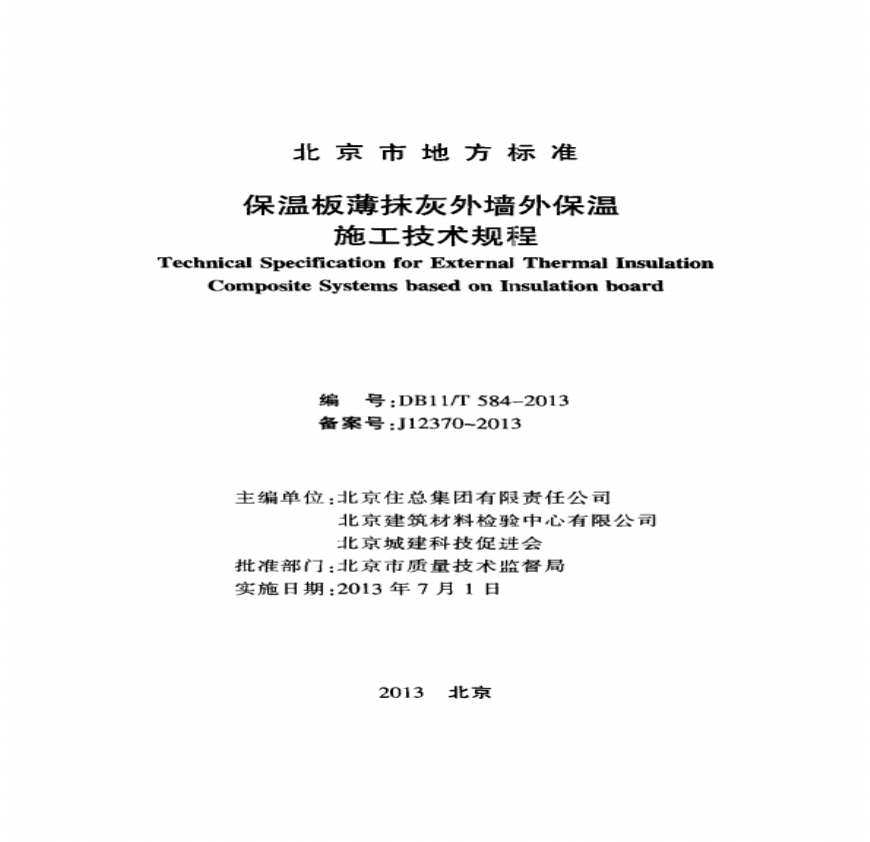 北京市 [附条文说明] 建标库:地方法规 北京市 北京市 [附条文说明] 学习资料页 」七京市地方标准DB:DBIT保温板薄抹灰外墙外保温施工技术规程Trxrr