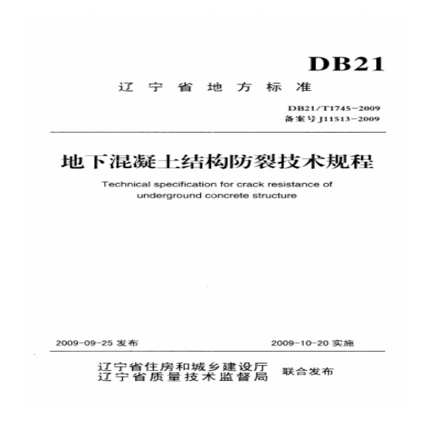 > DB21-T1745-2009地下溷凝土结构防裂技术规程