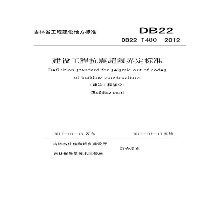 > DB22-T480-2012建设工程抗震超限界定标准(吉林省)