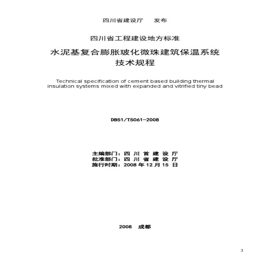 > DB51_T5061-2008水泥基复合膨胀玻化微珠建筑保温系统