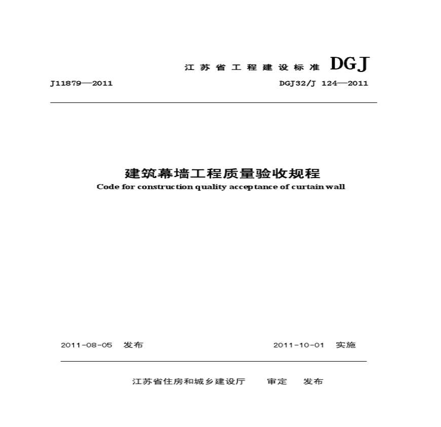 > DGJ32-124-2011建筑幕墙工程质量验收规程