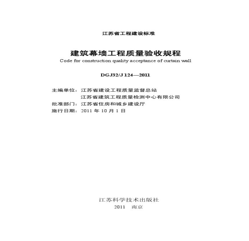 DGJ32-124-2011建筑幕墙工程质量验收规程资料下载,喜欢的朋友可以下载收藏!