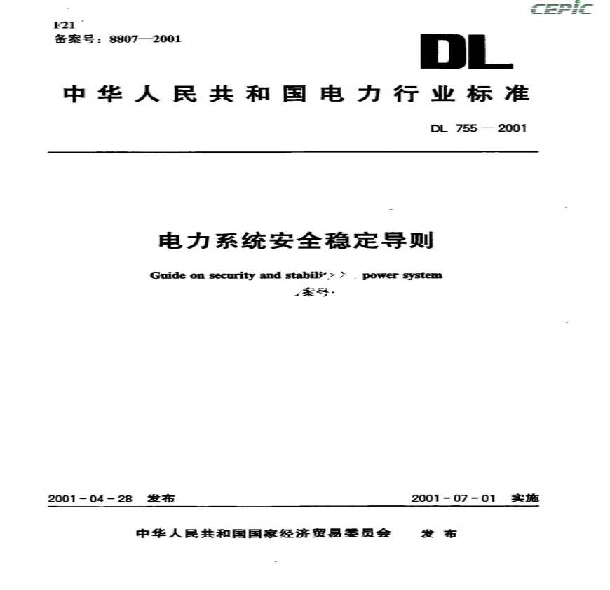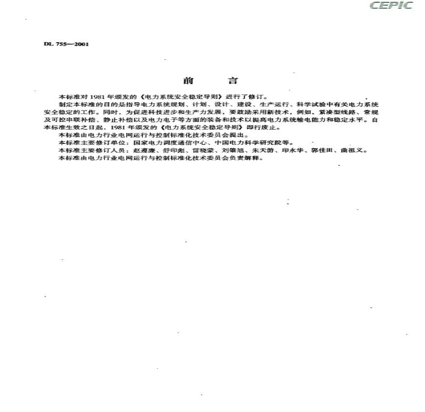 — 发布实施中华人民共和国国家经济贸易委员会发布前言本标准对年颁发的《电力系统安全稳定导则》进行了修订。