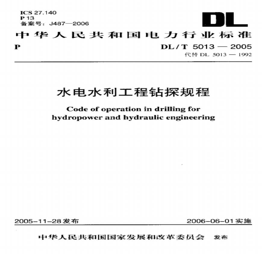 DL-T 5013-2005 水电水利工程钻探规程.pdf 免费下载