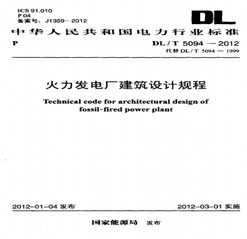 国标简介: 本规程适用于单机容量MW及以上燃用固体化石燃料,采用直接燃烧方式的新建及扩建发电厂的建筑设计。
