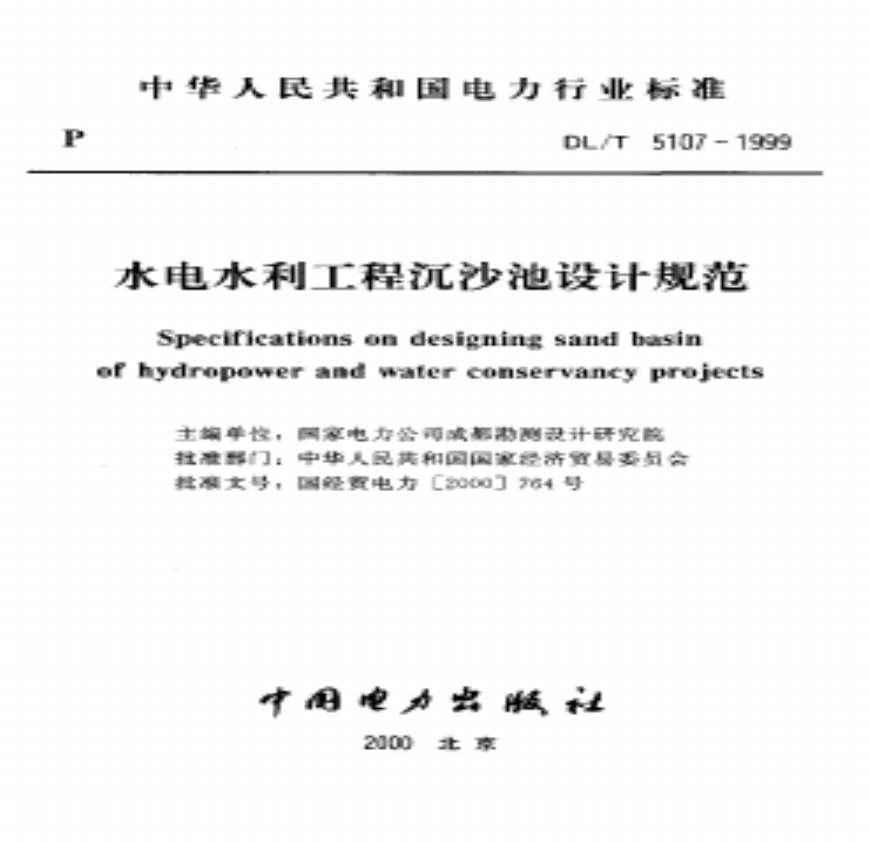泥沙》 ,备案号中华人民共和国电力行业标准水电水利工程泥沙发布实施中华人民共和国国家经济贸易委员会发布