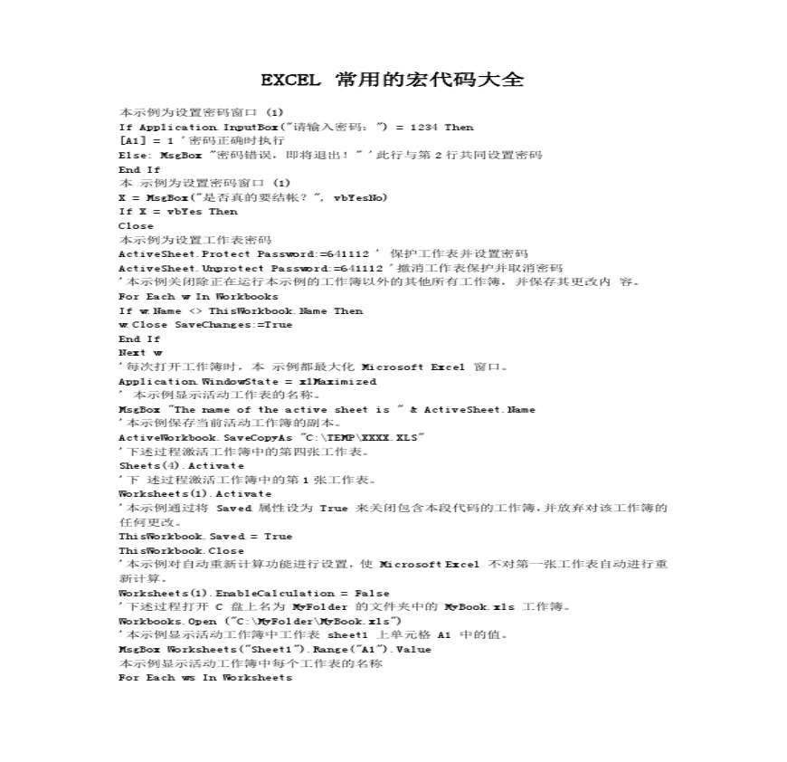 EXCEL 常用的宏代码大全.pdf 免费下载