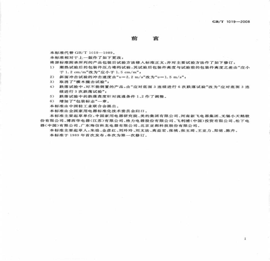 GB 1019-2008-T 家用和类似用途电器包装通则.pdf 免费下载