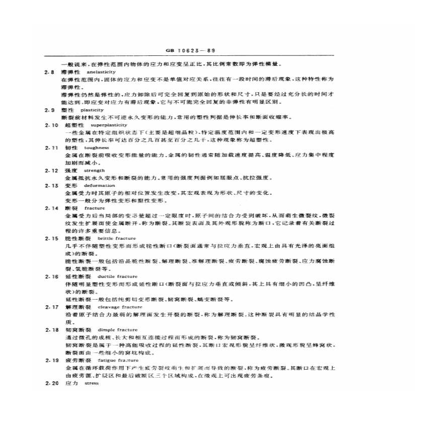 > GB10623-89+金属力学性能试验术语