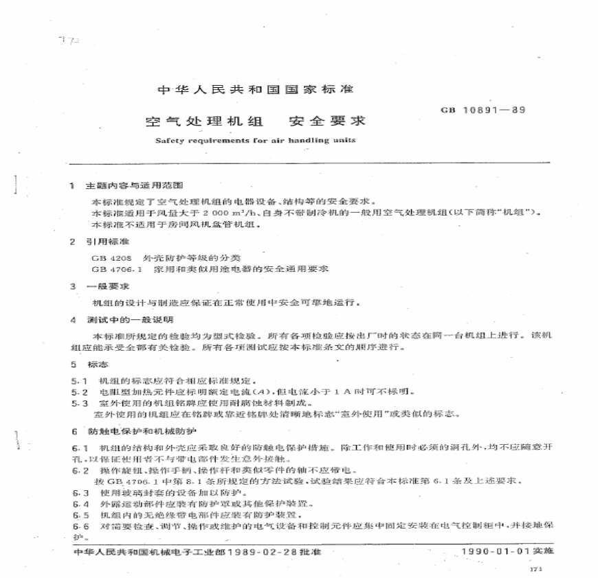 (GB 10891-1989)空气处理机组 安全要求.pdf 免费下载