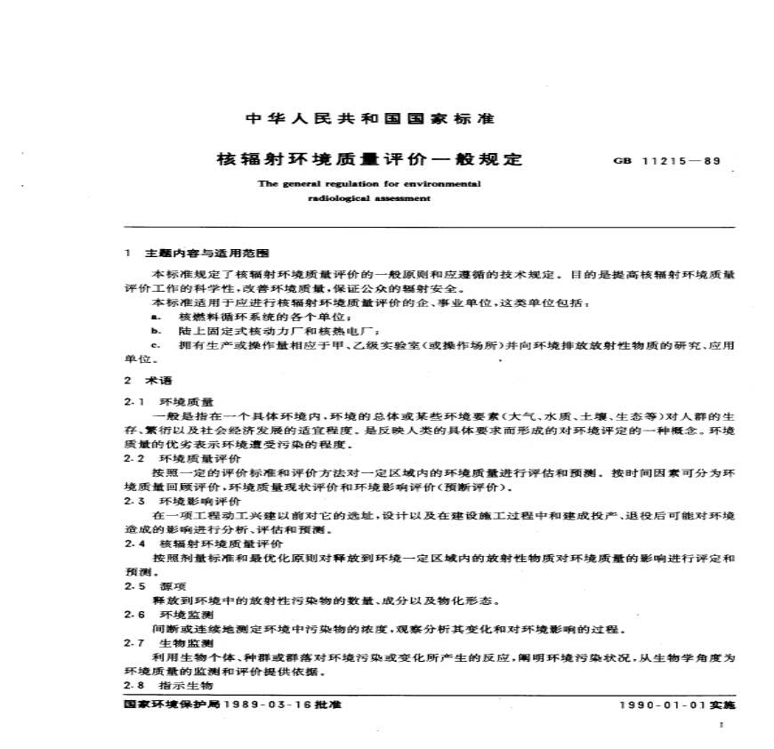 GB11215-1989核辐射环境质量评价一般规定.pdf 免费下载