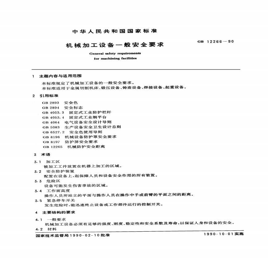 GB 12266-1990 机械加工设备一般安全要求.pdf 免费下载
