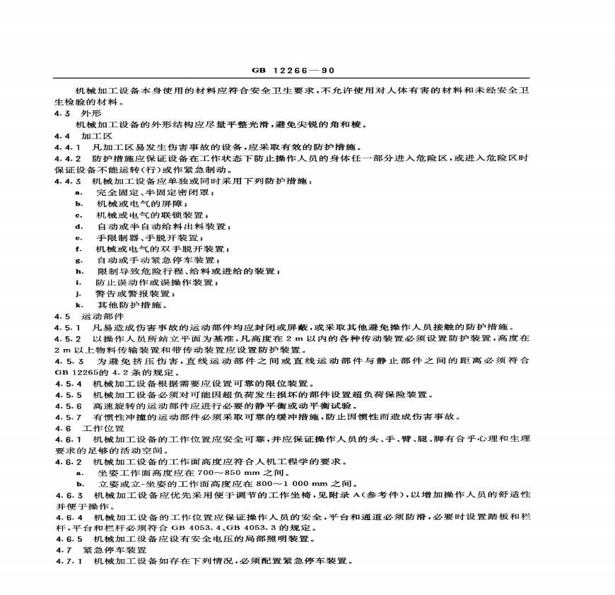 > GB 12266-1990 机械加工设备一般安全要求
