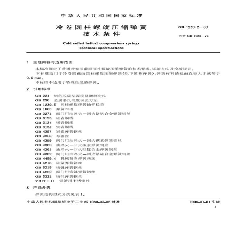 GB 1239.2-1989 冷卷圆柱螺旋压缩弹簧技术条件资料下载,喜欢的朋友可以下载收藏!