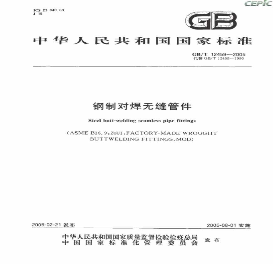 GB12459-2005T钢制对焊无缝管件.pdf 免费下载