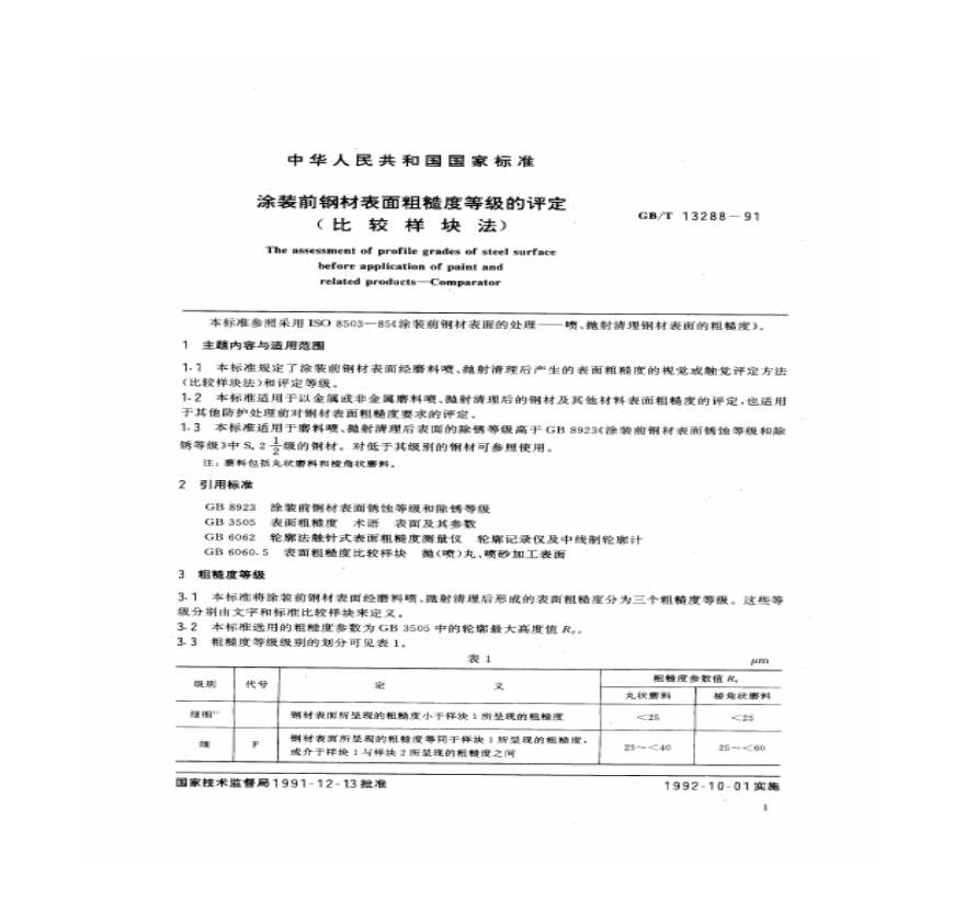 GB 13288-91 表面粗糙度等级的评定(比较样块法).pdf 免费下载