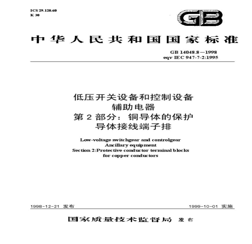 GB 14048.8-1998铜导体的保护导体接线端子排.pdf 免费下载