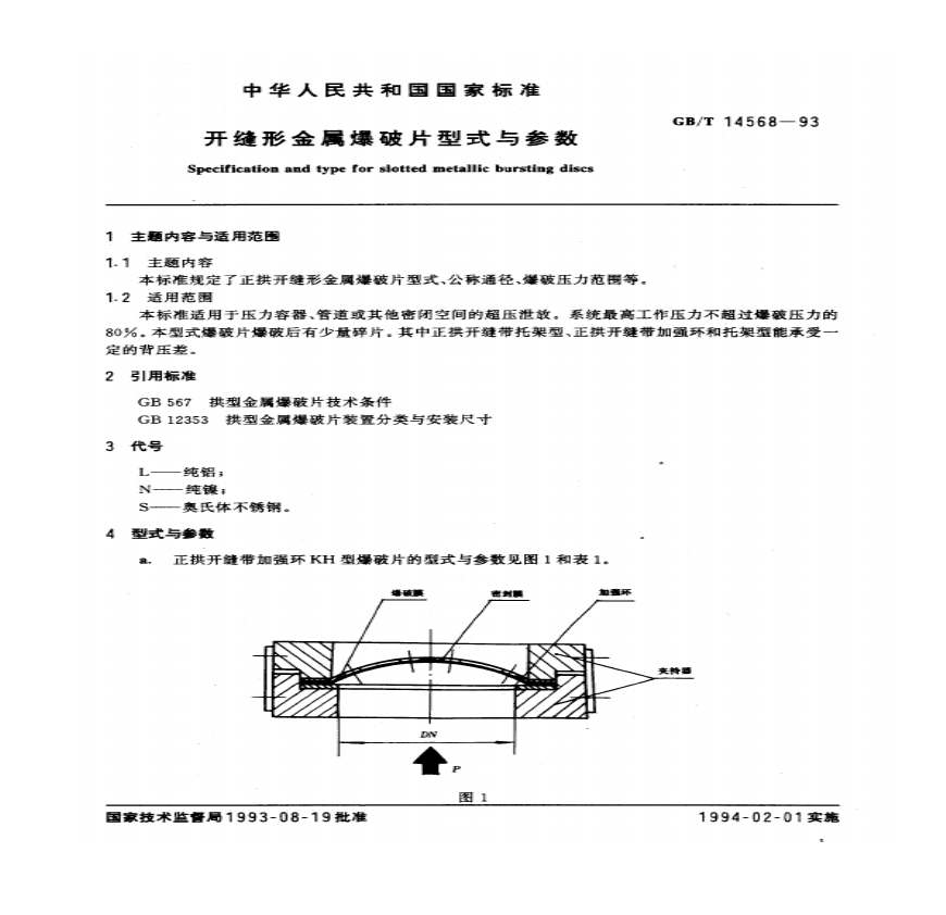 T 国家标准 T本标准规定了正拱开缝形金属爆破片型式、公称通径、爆破压力范围等。