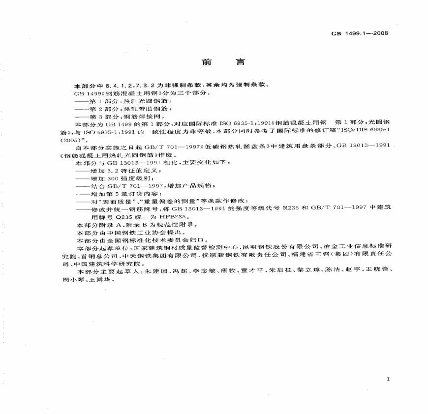 > GB 1499.1-2008钢筋混凝土用钢 第1部分:热轧光圆钢筋