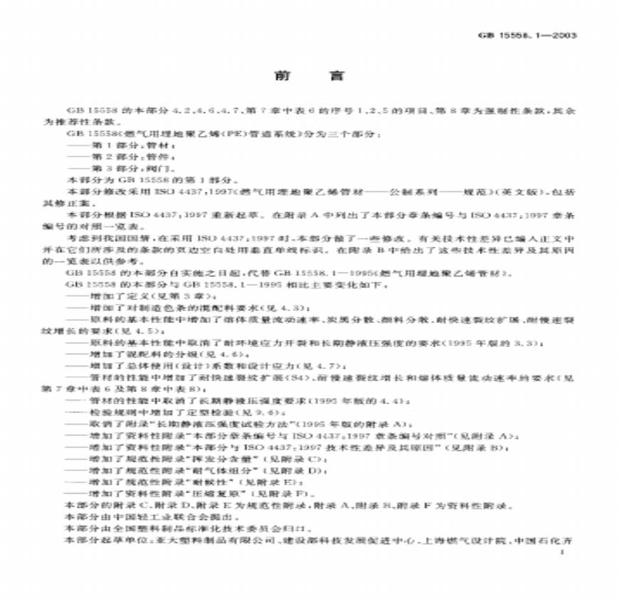 GB15558.1-2003燃气用埋地聚乙烯(PE)管道系统+第1部分资料下载,喜欢的朋友可以下载收藏!