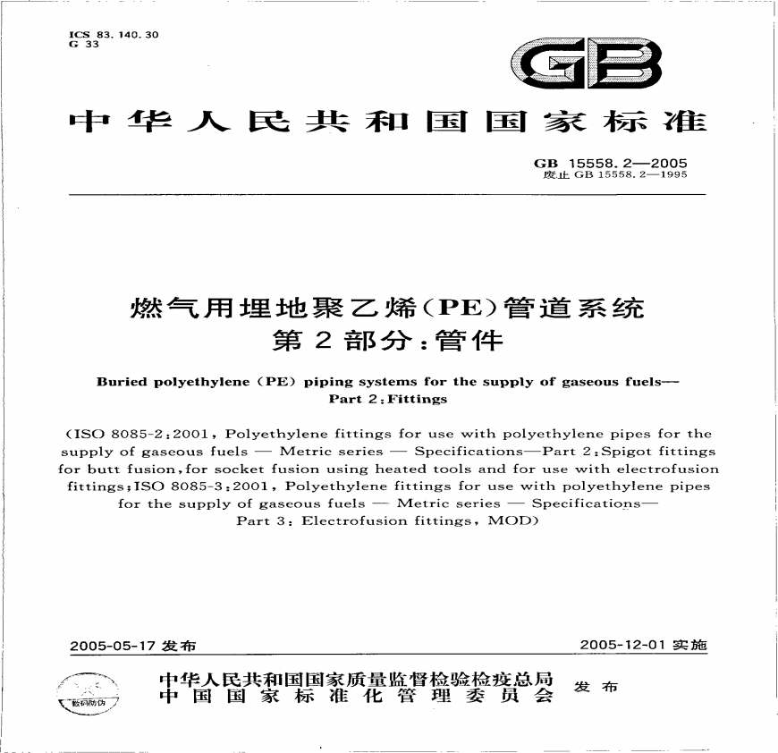 GB15558.2-2005燃气用埋地聚乙烯(PE)管道系统_第2部分:管件资料下载,喜欢的朋友可以下载收藏!
