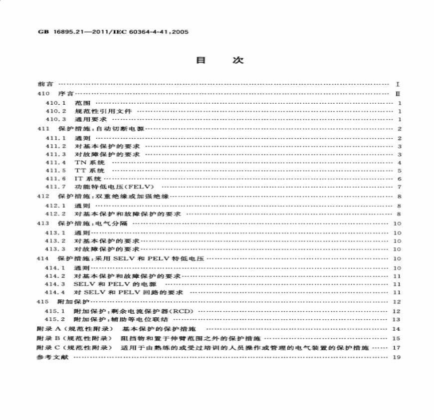 > GB 16895.21-2011 低压电气装置 第4-11部分:安全防护 电击防护