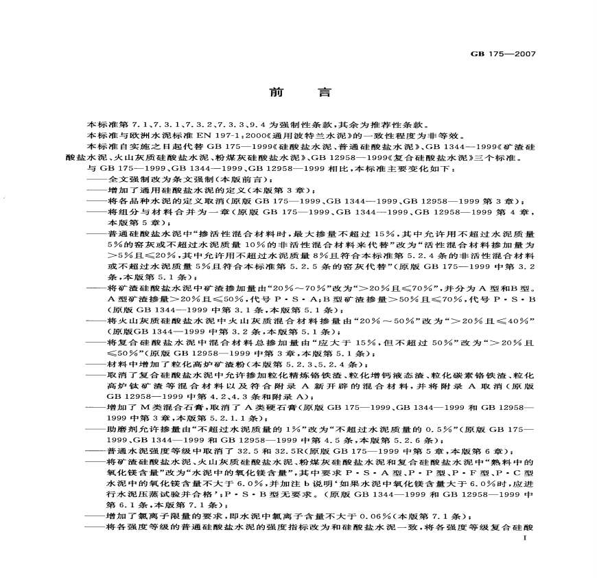 GB 175-2007《通用硅酸盐水泥》.pdf 免费下载