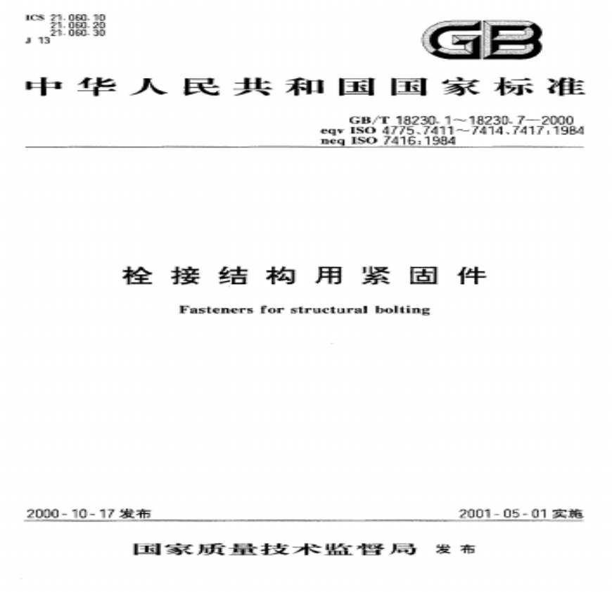 > GB 18230.3-2000 栓接结构用大六角螺母 B级 8和10级