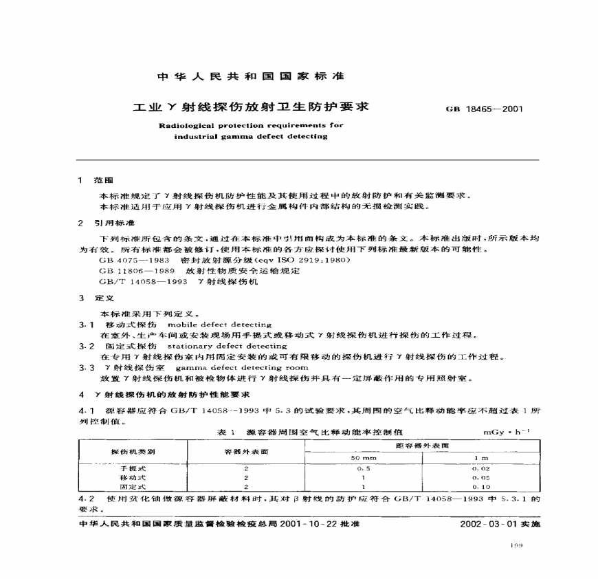 GB 18465-2001 工业Y射线探伤放射卫生防护要求.pdf 免费下载