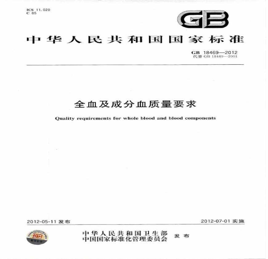 GB 18469-2012 全血及成分血质量要求资料下载,喜欢的朋友可以下载收藏!