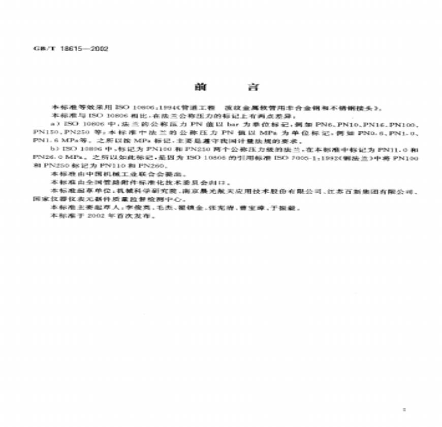 > GB18615-2002波纹金属软管用非合金钢和不锈钢接头