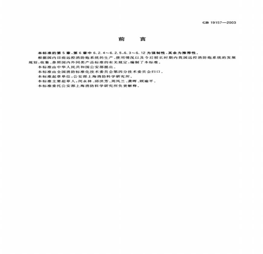GB 19157-2003 远控消防炮系统通用技术条件资料下载,喜欢的朋友可以下载收藏!