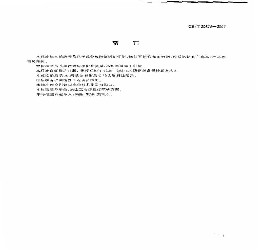 GB 20878-2007不锈钢和耐热钢 牌号及化学成分.pdf 免费下载