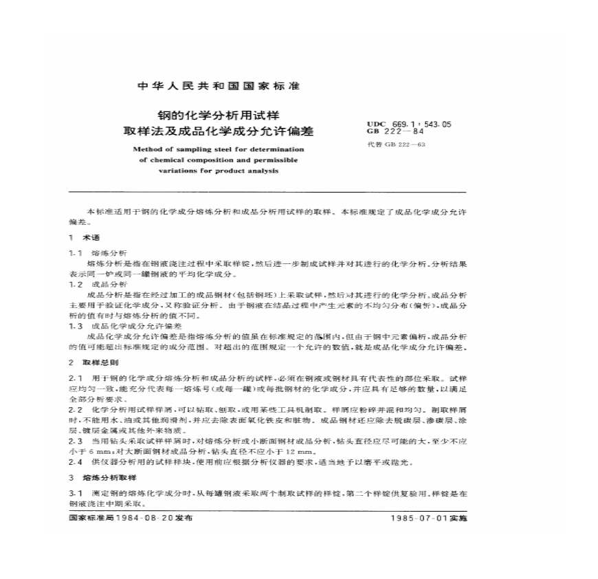 GB222-84 钢的化学分析用试样取样法及成品化学成分允许偏差.pdf 免费下载