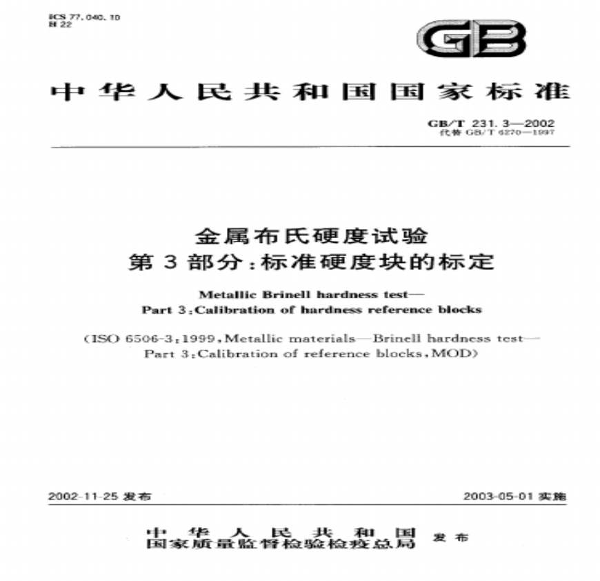 GB 231.3-2002金属布氏硬度试验 第3部分标准硬度块的标定资料下载,喜欢的朋友可以下载收藏!