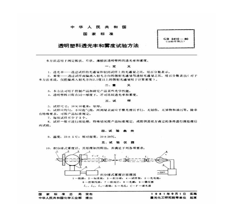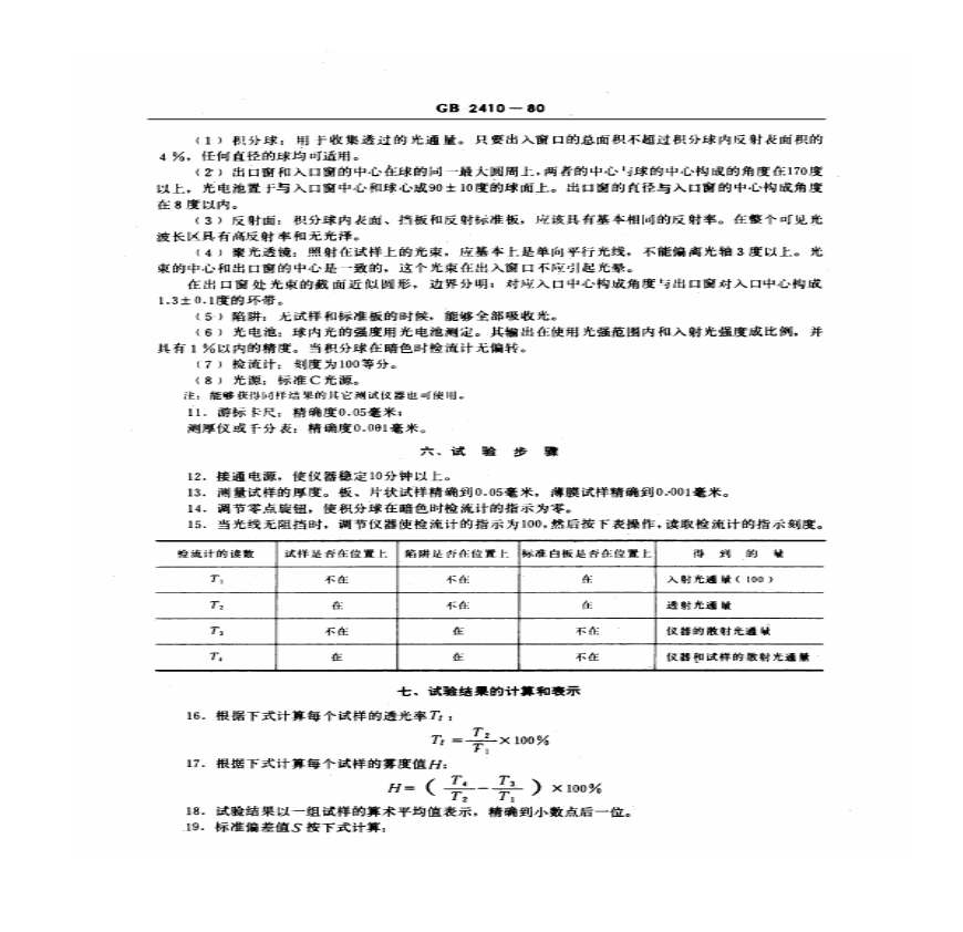 > GB 2410-1980透明塑料透光率和雾度试验方法