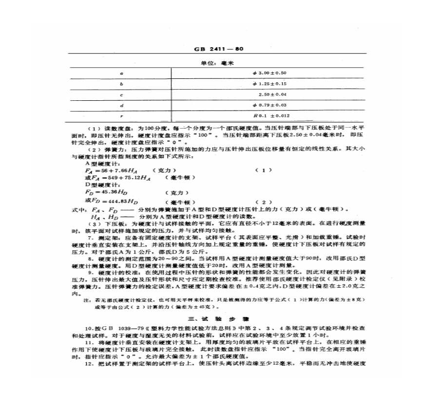 > GB2411-80塑料邵氏硬度试验方法