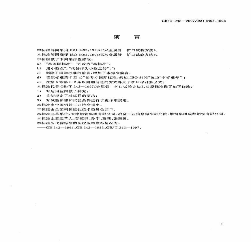 GB 242-2007-T 金属管 扩口试验方法.pdf 免费下载