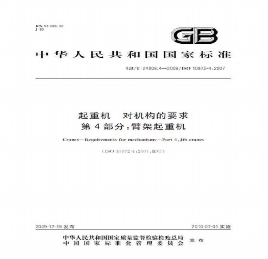GB 24809.4-2009-T 起重机 对机构的要求 第4部分:臂架起重机.pdf 免费下载