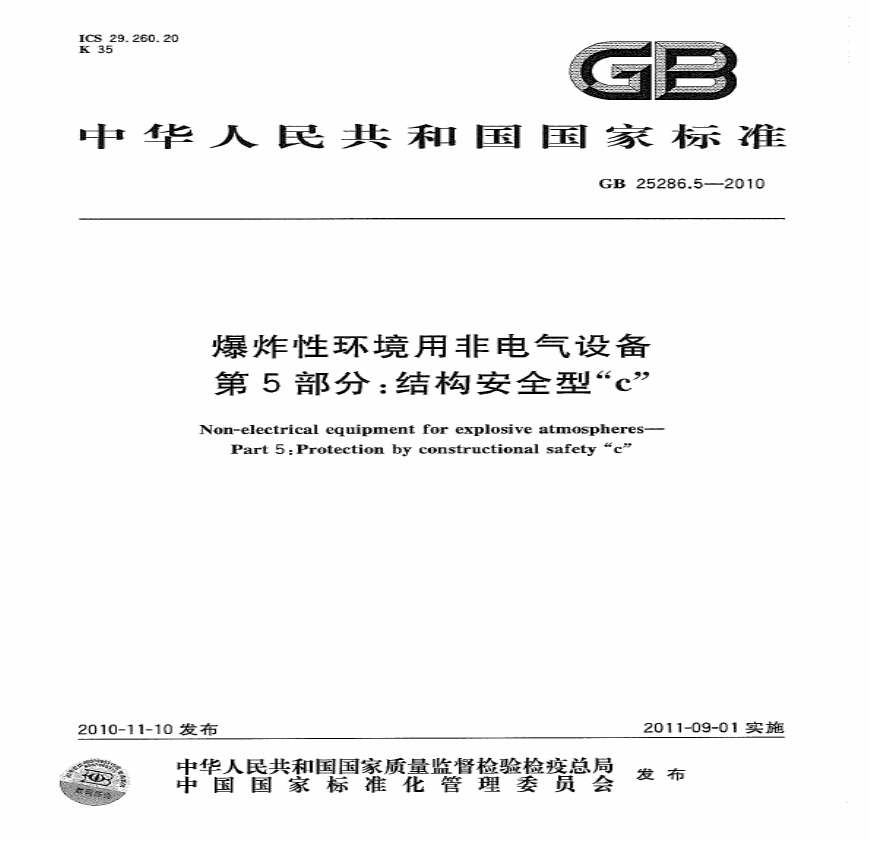 GB 25286.5-2010 爆炸性环境用非电气设备 第5部分:结构安全型c.pdf 免费下载